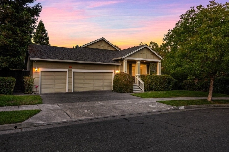 Welcome to the Skyhawk community with award winning Austin Creek elementary school. Skyhawk Village is close by with local shops to enjoy. Step up to your front porch where you can watch the time fly by. Come on into this spacious living room and formal dining room. Lots of windows and with bright light. Cathedral ceilings throughout the home. Spacious kitchen with cooktop range, tile counter tops and island and refrigerator complete the kitchen. All appliances including the washer/dryer stay. Family room is close to the kitchen with a slider that opens out to the deck and the beautiful backyard. Wander down the hallway to the 3-car garage and the laundry room is close by. One guest bedroom is being used as a sitting room. The other guest bedroom is used as an office. Primary bedroom is very spacious with ensuite bath with separate shower and tub at the end of the hallway with a slider that gives you access to the outside patio and deck area. Backyard is spacious an most plants and trees are on drips and irrigation system. Waterfall and pond complete the ambiance. Hurry before this well-maintained home is gone.