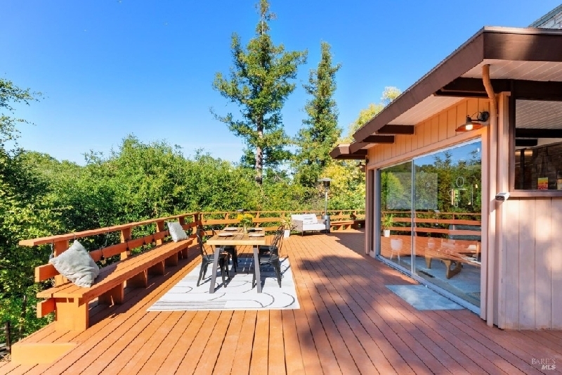 Tucked among heritage oaks and meadows on nearly half an acre, this authentic Midcentury home borders Paulin Creek Preserve, offering rare privacy and harmony with nature. Thoughtfully preserved, it features open-beam ceilings, warm wood interiors, and an iconic A-frame living room filled with light. Walls of glass open to wraparound decks perfect for al fresco dining or quiet reflection. Nearly 2,000 sq ft includes dramatic living areas, a spacious primary suite, and two serene bedrooms—an ideal retreat for Midcentury purists or those seeking a soulful retreat to make their own in a hidden Santa Rosa enclave near shops and schools.