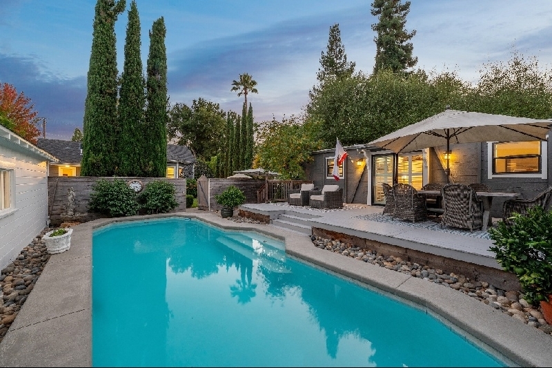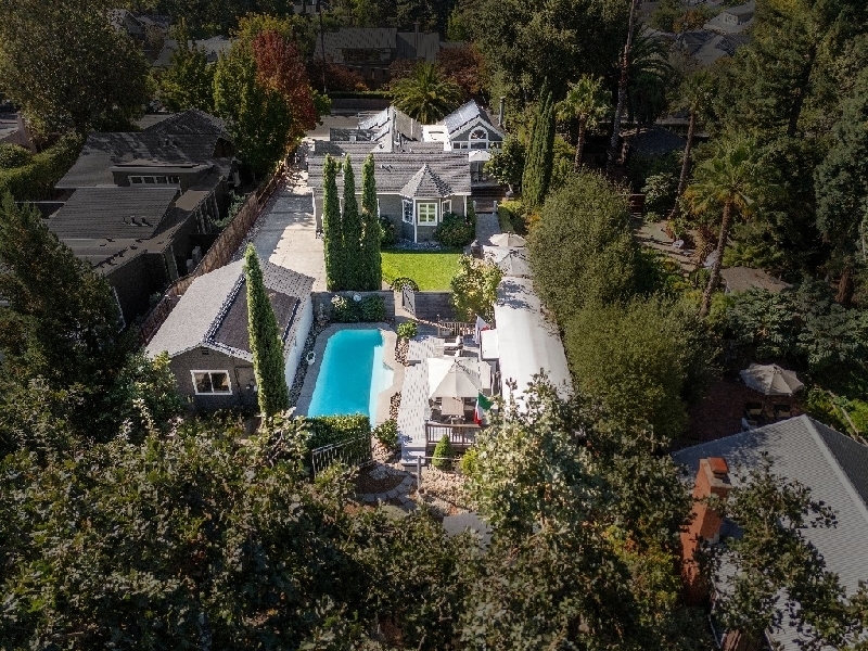 A true rarity...downtown east side Sonoma, designer-renovated home on level 1/2+- acre. Timeless authenticity blends with exquisite design and modern conveniences just off the Plaza. Light-filled main home has 3 generous bedrooms (2 are ensuite) and 2.5 baths, high ceilings, hardwood floors, curated fixtures and a soothing color palette. Oversized windows and French doors frame and access lush gardens. A glassed vestibule leads into inviting spaces including great room living/dining rooms open to one of the spacious terraces. The skylit gourmet kitchen opens seamlessly to the family room for gathering. An expansive primary suite wing feels like a boutique retreat with sitting area, bay window, built-ins and a spa-like bathroom. Enchanting guest quarters: a professionally converted caboose serves as a guest house with full bath - private and stylish w/outdoor entertaining area. Enjoy resort-level wine country amenities with a sparkling pool, multiple entertaining patios and a bountiful farm-to-table growing garden. Includes an oversized garage with room for a boat(s), solar & a generator. Rarely does a property combine luxury & chic whimsy in such a coveted location, stroll to the park, shops & entertainment, 1+/- hour to San Francisco.