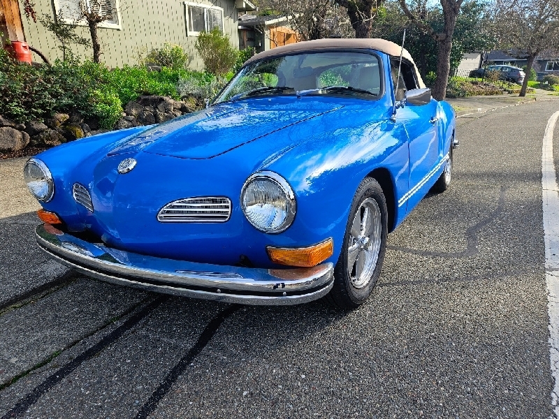 Volkswagen Karmann Ghia Convertable 1973 $28k Refurbished and customized with a 2332cc engine, dual webers, 5 speed w/ short throw, extractor exhaust, special 5-1/2" wheels, gauges, new leather seats, carpeting, voodoo blue color with tan top. 707-318-2633